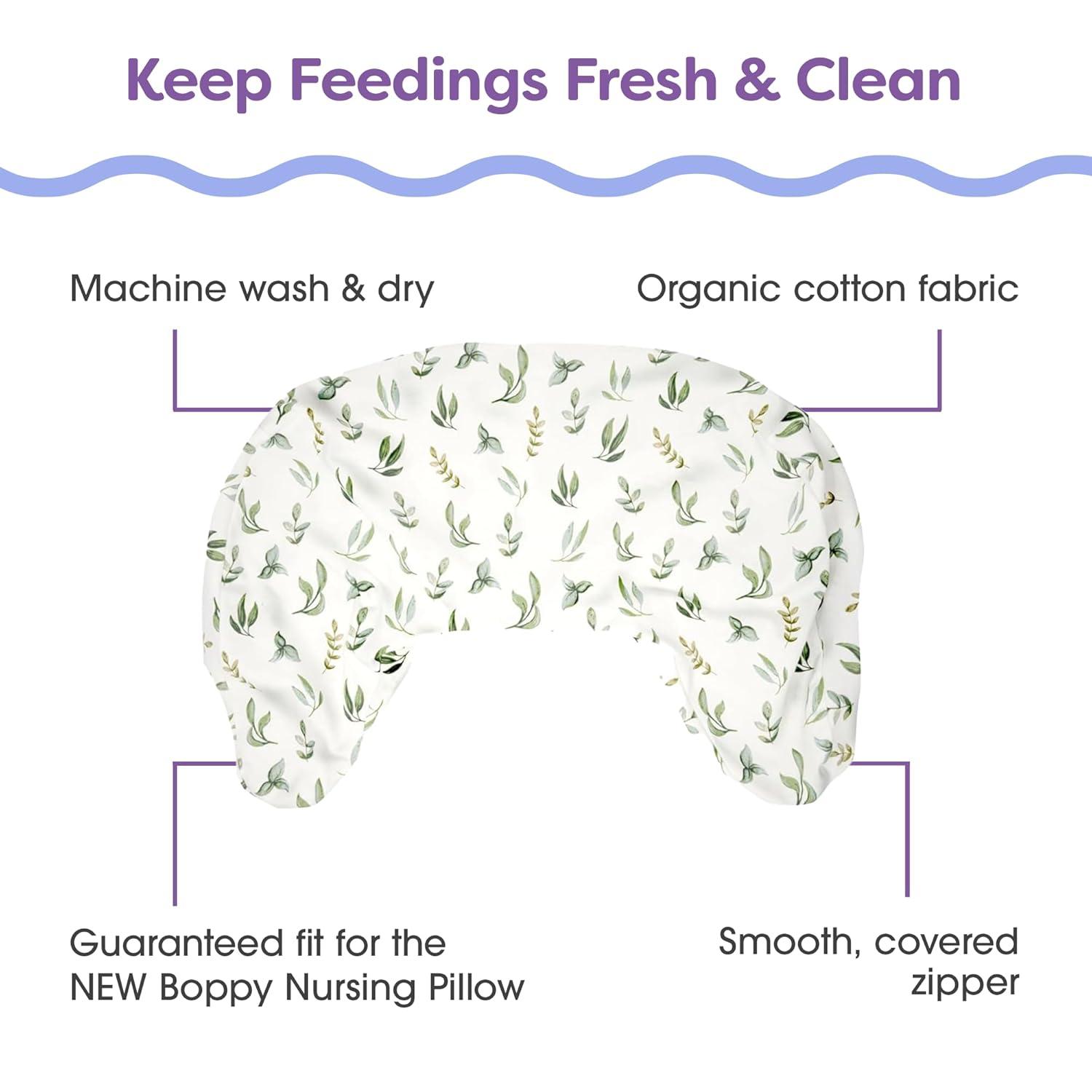 Boppy Nursing Pillow Cover, 100% Organic Cotton, Swatch Card, Fits The Original Support Pillow for Breastfeeding and Bottle Feeding, Cover Only, Nursing Support Pillow Sold Separately(Organic – Green Leaves)