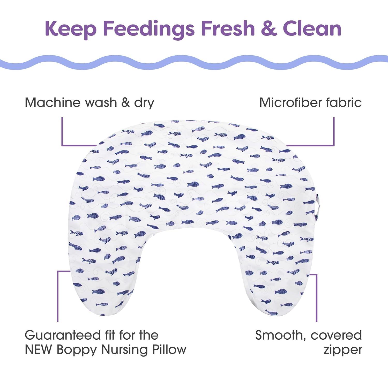 Boppy Nursing Pillow Cover, Neutral Navy Fish, Single Cover, Easy-On Slipcover with Extra Soft 100% Polyester Microfiber Fabric for The Redesigned Nursing Pillow