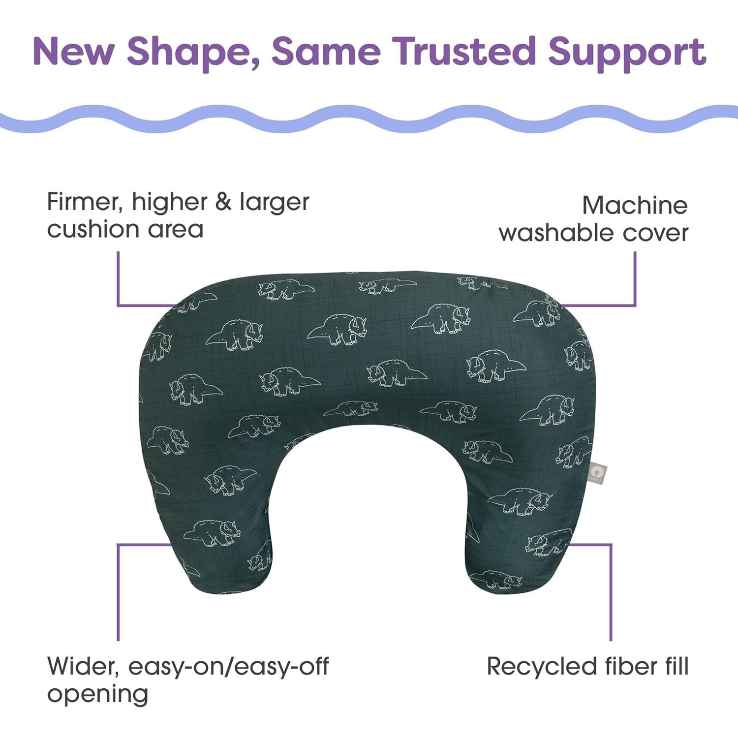 Boppy Nursing Pillow – Ergonomic Bottle & Breastfeeding Pillow with High, Firm, Large Area, Water-Repellent Cushion with Washable Cover; Baby Safety Alliance Verified – Oatmeal Boucle(Forest Green Dinos)