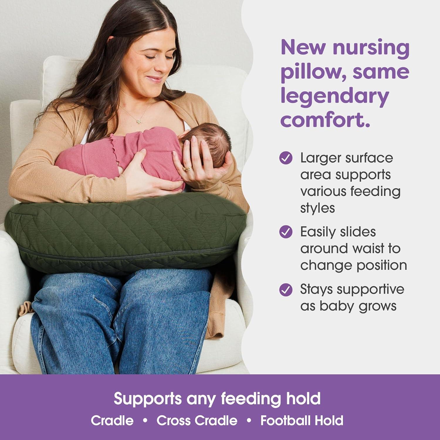 Boppy Nursing Pillow – Ergonomic Bottle & Breastfeeding Pillow with High, Firm, Large Area, Water-Repellent Cushion with Washable Cover; Baby Safety Alliance Verified – Quilted Moss(Luxe – Quilted Moss)
